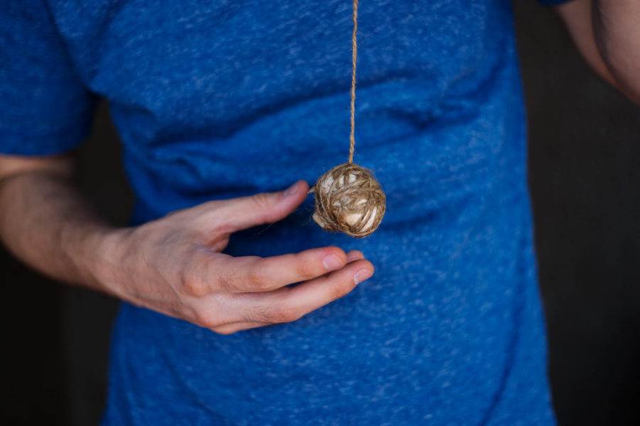 While brainstorming last night about how to do this image, we thought that it would be best to put the twine in my mouth, so as to create natural shadows from an eye socket (see the video). I nearly gagged to my grave as I stuffed twine in my mouth this morning and photographed it. The look of it ended up being too loose for the image, so I had to redo it. That was when we started brainstorming what we could wrap twine around that would hold it shape and be the same color as the white of an eye.