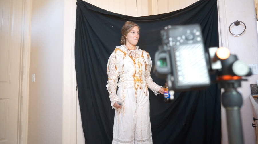This past week I had an idea to make myself look like I was covered in tree sap while hanging upside down from the most epic tree I’ve ever seen. In order to do that, I had to cover myself in molasses…or, as it ended up turning out, corn syrup.