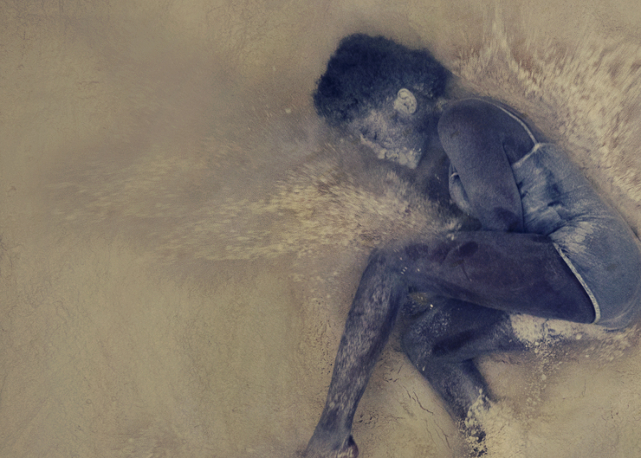 When I began thinking about how to visually portray this idea, my mind kept going to black and white – contrasting colors – something striking. That was when I had the idea to allow race to play some part in the image. There are always many sides to an idea, so instead of holding tightly to the theme of being held back from who you want to be, I recognized it could also be the theme of having your current identity stripped away by what others want or expect of you. The flour coating her body and exploding all around her spoke to me as a way of communicating the force of that push and pull. The way the flour stuck to her face seemed to me like a mask – the one we hide behind or the one we are given.